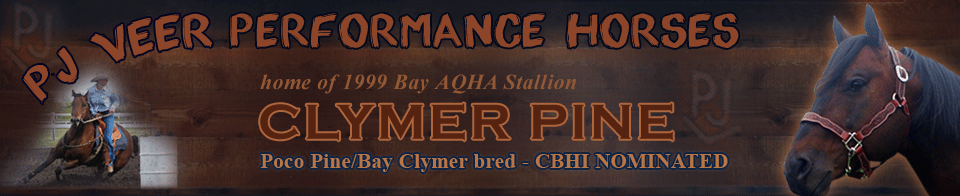 PJ Veer Performance Horses - home of AQHA Stallion, Clymer Pine (Poco Pine/Bay Clymer bred)